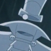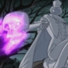 Description: Jim holding his cane with the skull pommel pointing forward, glowing in preparation for a spectral attack